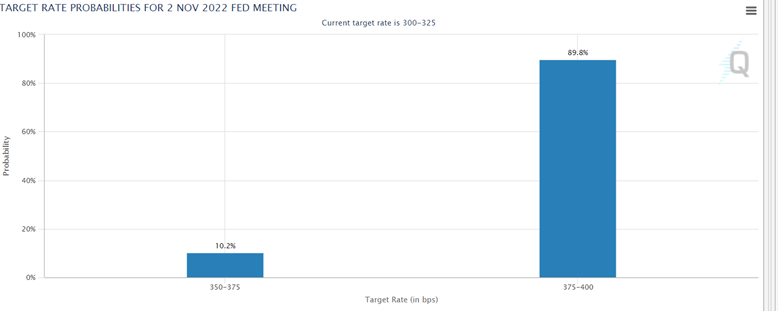 利率期货数据显示,目前市场预期美联储11月加息75个基点的概率超过85%。同时,中金宏观、瑞士百达、平安证券等多家机构也认为美联储将在11月再次加息75个基点。