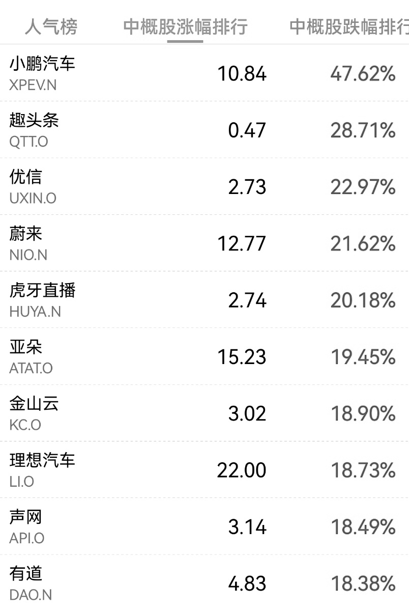 小鹏汽车股价涨47.62%,领涨中概股,带动中概新能源汽车股集体大涨,蔚来汽车涨21.62%,理想汽车涨18.73%。