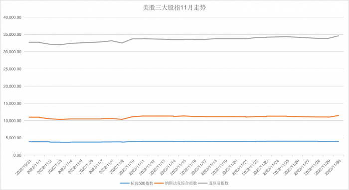 从11月的表现来看,其实美股三大股指已经小幅走高,道指11月累计上涨5.67%(10月上涨13.95%),纳指11月上涨4.37%(10月上涨3.90%),标普500指数11月上涨5.38%(10月上涨7.99%)。