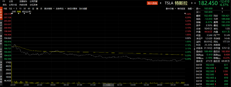 受减产传闻影响,特斯拉盘前一度跌超5%,截至收盘,该股跌幅扩大至6.37%。