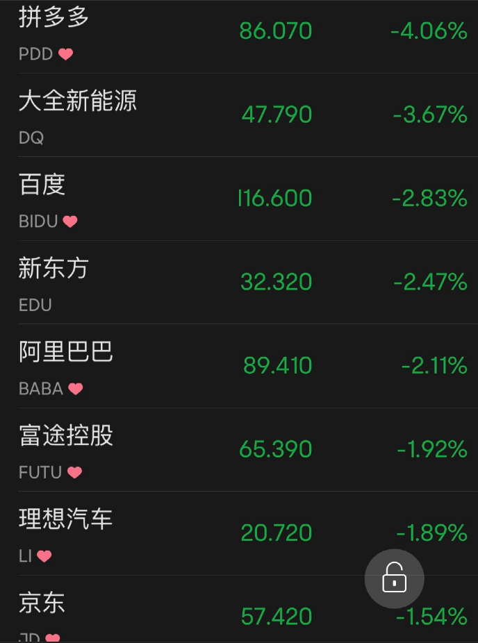 中概股多数下跌,受通信行程卡下线影响,跨省旅游热度大增,携程网股价逆势走高。