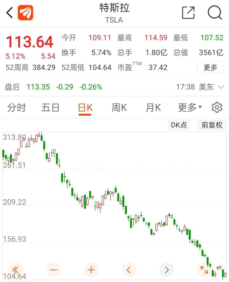 凯茜·伍德大举抄底次日,特斯拉迎来了超跌反弹,特斯拉股价大涨超5%,总市值回升至3588亿美元。
