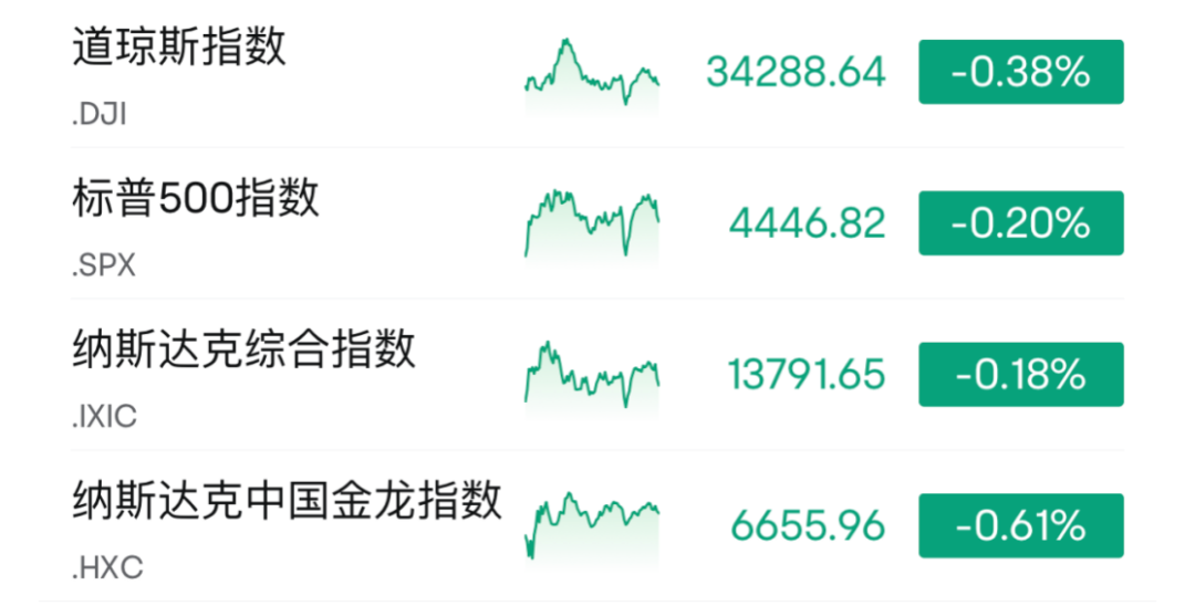 当地时间7月5日,美股三大股指小幅收跌,其中,道指跌0.38%,标普500指数跌0.2%,纳指跌0.18%。