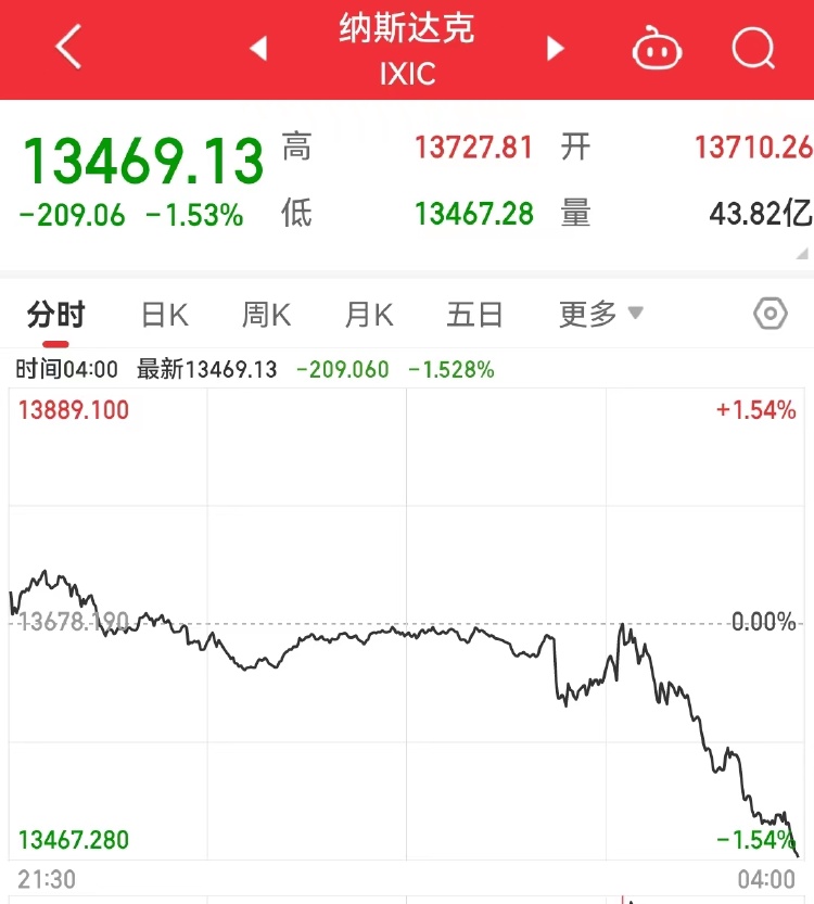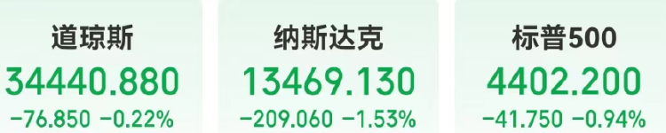 美联储主席鲍威尔也并未安抚市场,他表示,美联储准备在适当的情况下进一步加息,虽然强调将会“谨慎行事”。在鲍威尔讲话后,美股尾盘一路震荡走低,上演“跳水”,截至北京时间9月21日05:00,美股三大指数集体收跌。纳指下跌209点,跌幅1.53%,标普500指数跌0.94%,道指跌0.22%。