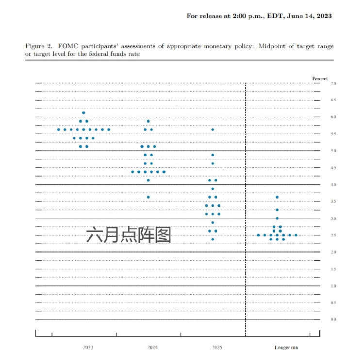 2023年底的联邦基金利率持平今年6月公布的预期水平5.6%。