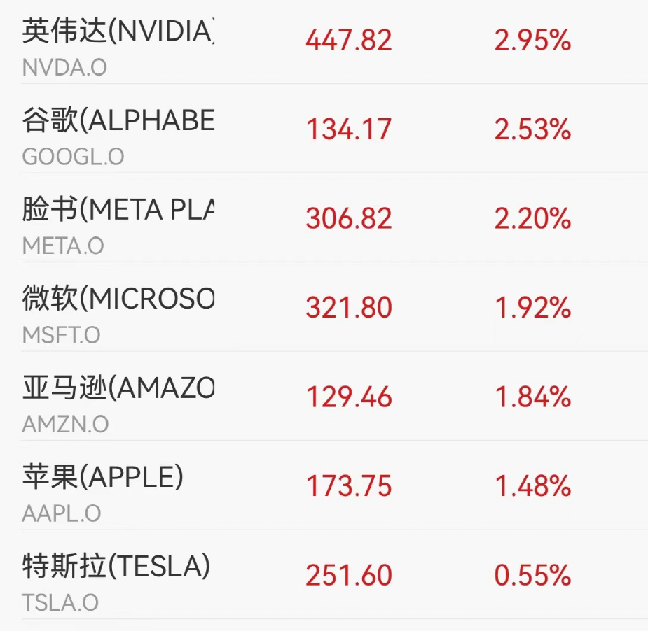 美东时间10月2日周一,大型科技股集体收高。苹果涨1.48%,微软涨1.92%,谷歌涨2.53%,亚马逊涨1.84%,特斯拉涨0.55%,Meta涨2.20%。