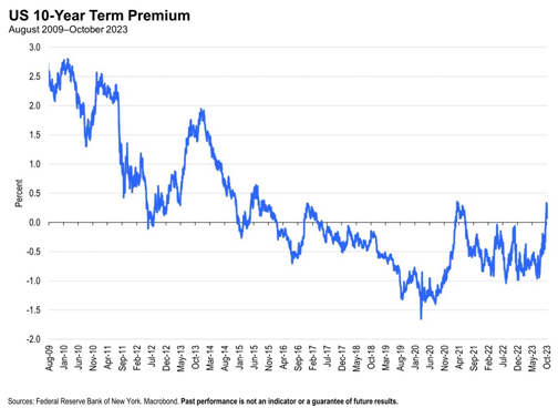 富兰克林邓普顿首席策略师Stephen Dover则认为,近期长端债券收益率的飙升主要是因为期限溢价(term premium)的攀升。他表示,美联储确实在缩表(债市的一个重要购买力量逐渐退出),且世界各地的政府积累了巨额赤字,需要更多债券发行。他推断,最近债券收益率飙升的时机难以仅从供需角度解释,结论是收益率上升背后的原因主要是期限溢价。