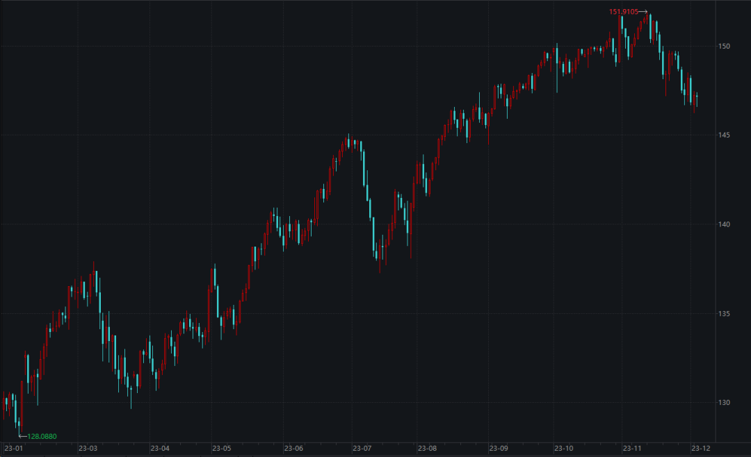 日本央行宣布货币政策决定使市场预期落空后,日元继续走弱,美元兑日元突破143。自11月初创下151.9105的年内新高后,市场开始预期日本央行将结束超宽松政策,日元开始缓慢走强,美元兑日元一度从151回落至141。但从此次日本央行的表态看,短期内,日元仍有可能维持弱势。