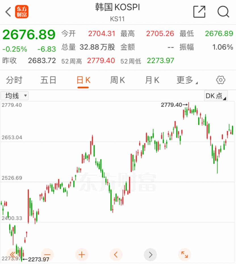禁止卖空政策出台的背景是,韩国股市持续大跌,去年10月,韩国综合指数累计跌幅达7.6%,创2022年12月以来最大的月度跌幅纪录,创出阶段性新低。