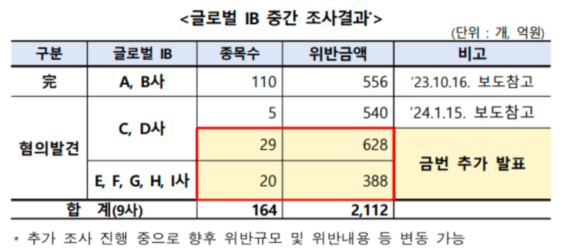 韩国金融监督院高级副院长Hahm Yong-il日前表示,这9家投行中有2家已面临金融当局的处罚,并因涉嫌违反国家资本市场法而被移交给检察官作进一步调查。金融监管机构目前正计划对其他7家银行的处罚进行审查。