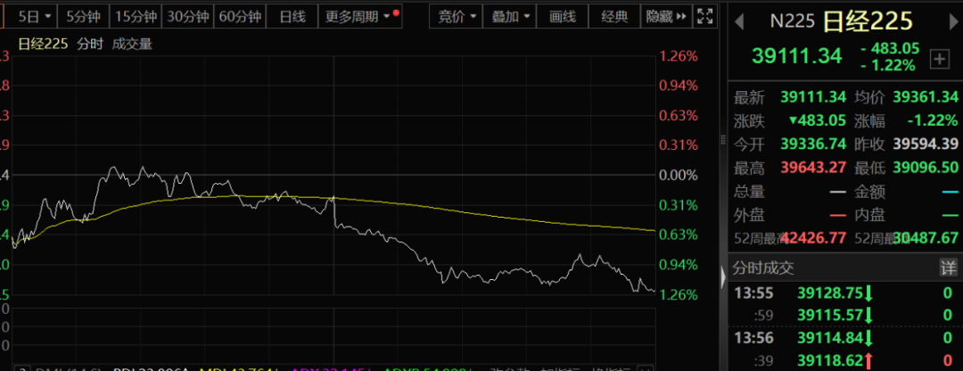 7月24日,日本股市大幅杀跌,日经225指数现跌超1.2%,该指数在7月11日见到高点之后,持续下行。截至今日,跌幅近7%。