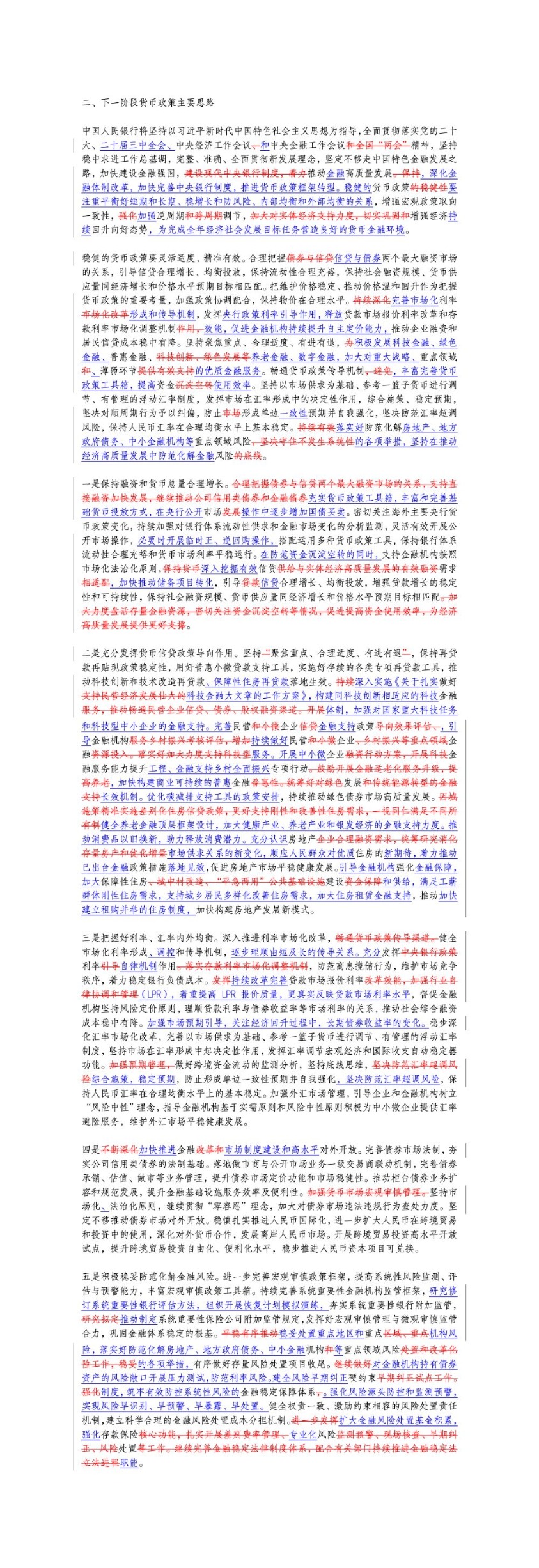 附央行二季度和一季度货政报告中“下一阶段货币政策主要思路”部分逐字对比(蓝色为新增部分,红色为删除部分):