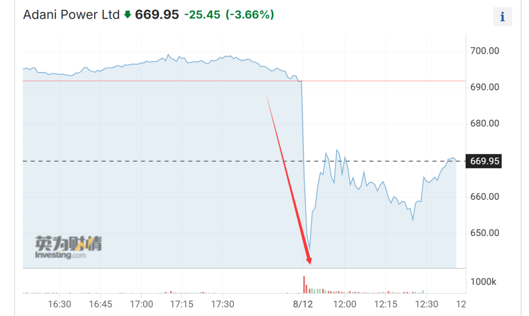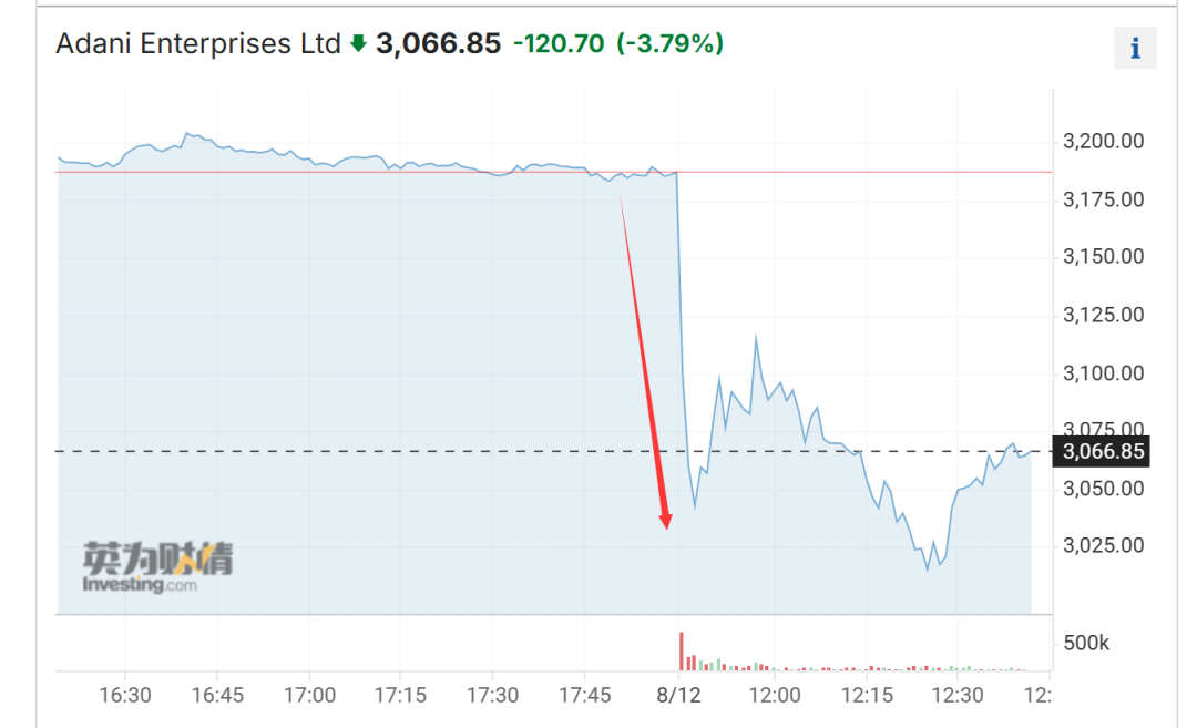 8月12日,印度阿达尼集团旗下公司股价开盘直线下跌,阿达尼企业跌幅一度高达5.3%。