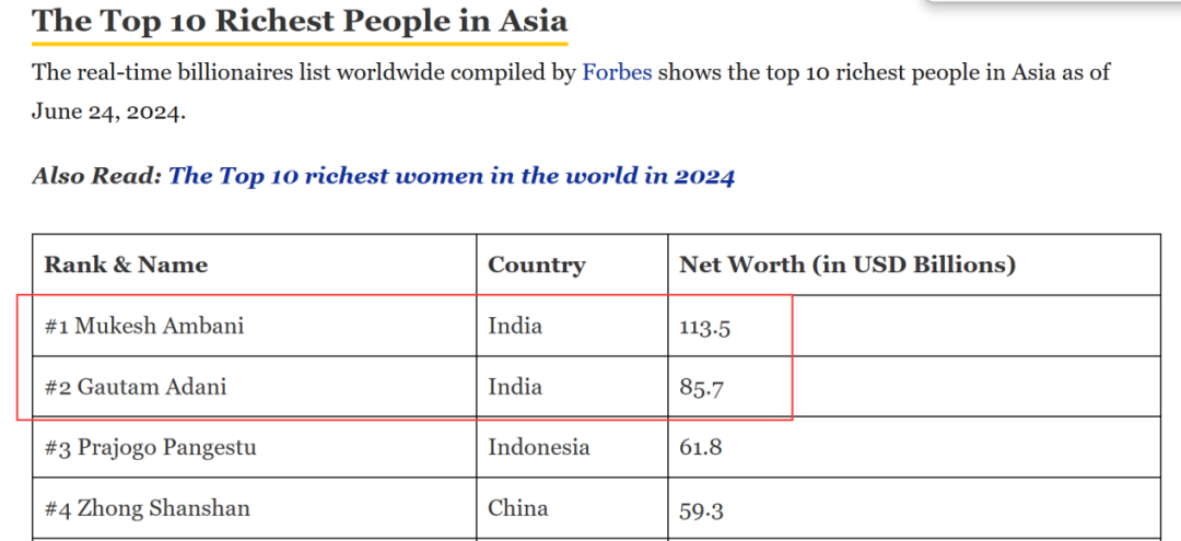 值得注意的是,2023年1月,兴登堡研究指控阿达尼集团操纵股价和会计欺诈,一度导致阿达尼集团的市值蒸发1500多亿美元。阿达尼也因此失去了“亚洲首富”宝座。其竞争对手印度信实工业主席穆克什·安巴尼成为亚洲新首富。