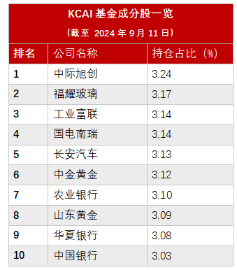 截至9月11日KCAI基金前十大持股 来源:美国金瑞基金官网