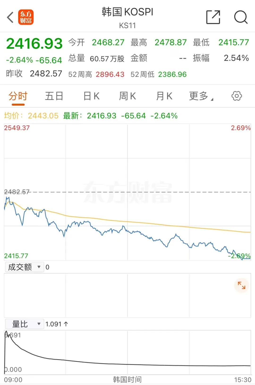 周三,亚太地区指数几乎全线杀跌,韩国股指跌幅都在2%以上,截至收盘,韩国首尔综指收盘跌2.64%。权重股方面,韩国锌业跌超14%,LG化学跌超5%,浦项制铁跌5.25%;三星电子跌4.53%,创2020年6月来低位。